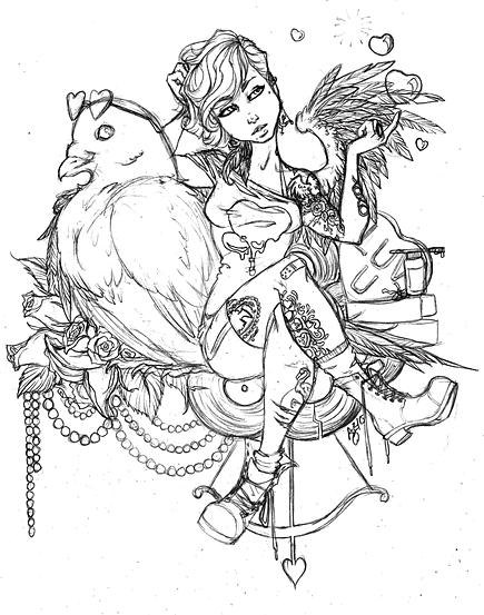 Benson's artwork is amazingly detailed. Her manipulation of shading using gradients brings a great deal of depth to her images. Her layers upon layers of shading and detail to the body and it's accessories makes it so there is always something new to see when looking at once of her pieces. Despite the non-realistic style of her drawings the images still have an amazing control of anatomy and texture, whether it be jewelry or the folds of clothing. Her work takes sketching and then uses the benefits of vectors to give is more depth and detail than possible in another format.